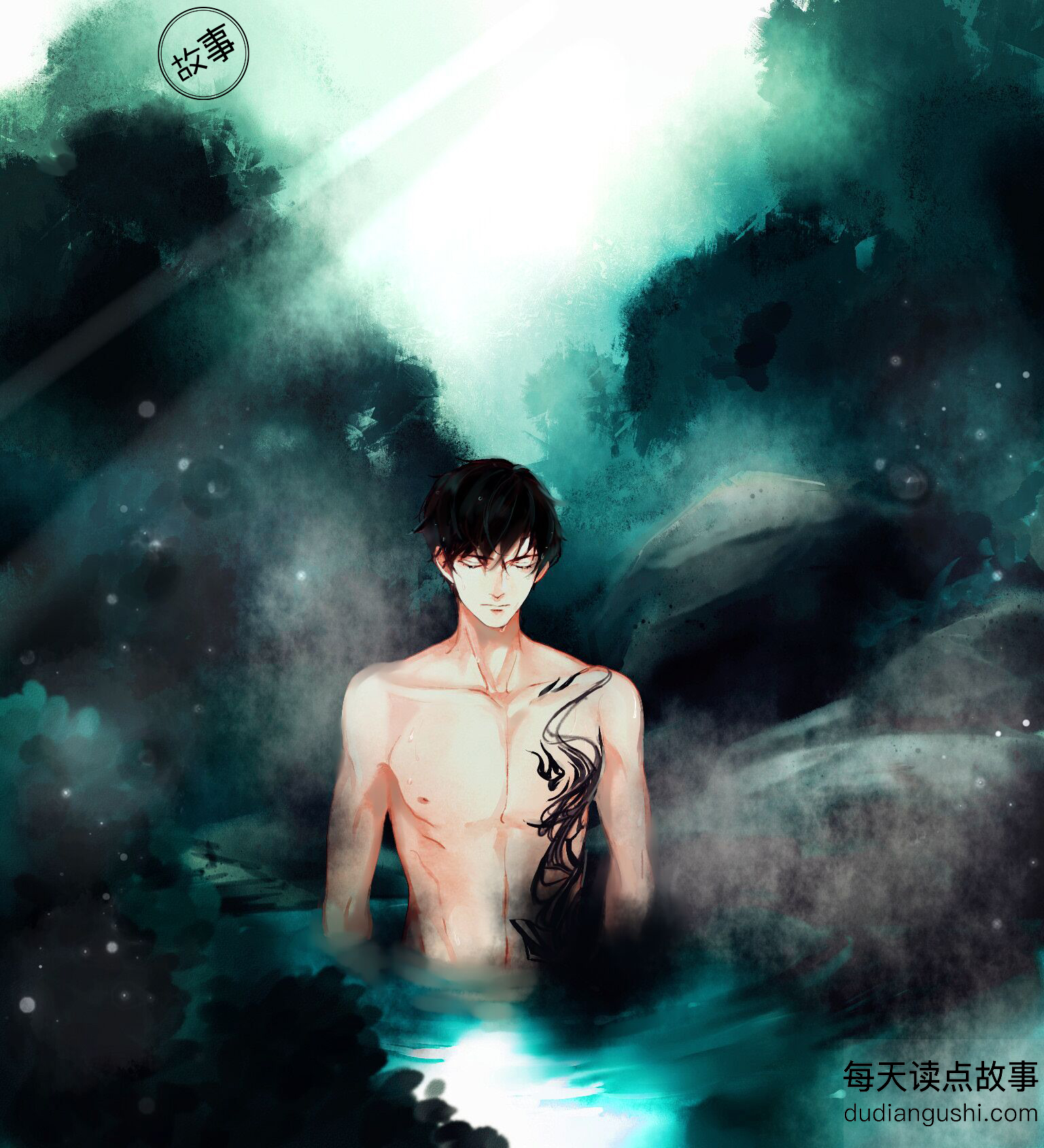 那迅速在朝陈公虞靠拢的黑气仿佛瞬间活过来了一般,爬上了水面之上,攀附在陈公虞的身躯之上。他肌理分明的胸膛和肩膀,瞬间爬上了黑色的古怪的纹路,像是纹身一般,占据了他左半边的身子,甚至还试图从他的肩膀,深入他的脖颈,继续往上爬蹿……